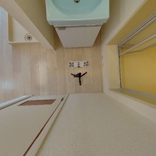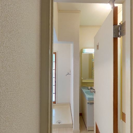 洗濯機置き場が近接(確度80%):洗面台横に洗濯機用の排水口がある。