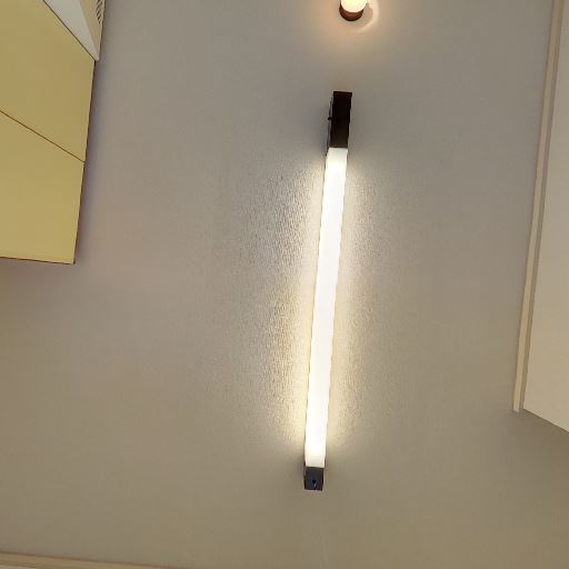 照明設備(確度70%):天井に細長い蛍光灯タイプの主照明と小型ダウンライトがある。