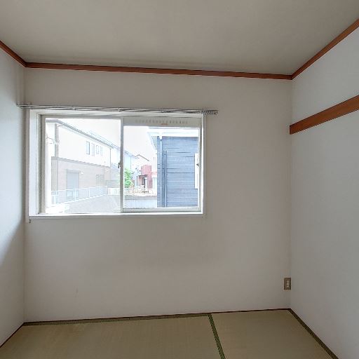 和室の収納(確度86%):押入れがあり上下2段の棚で布団や季節物をしまえる。