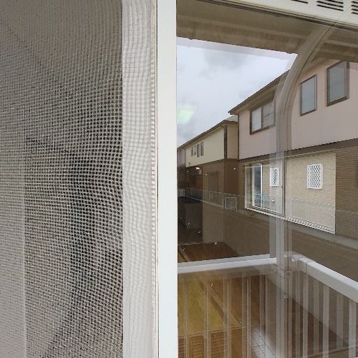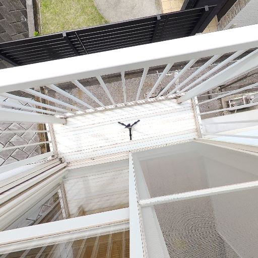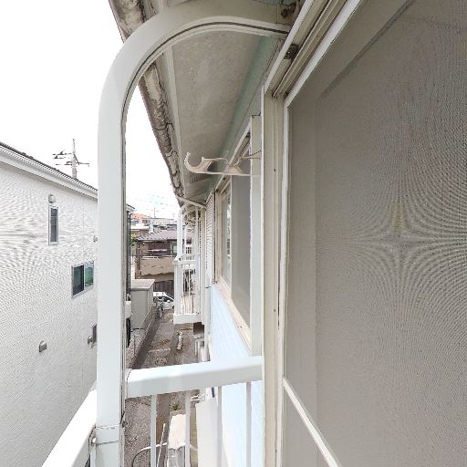 バルコニーの存在と物干し金具(確度83%):細長いバルコニーがあり、物干し用フックが設置されている。