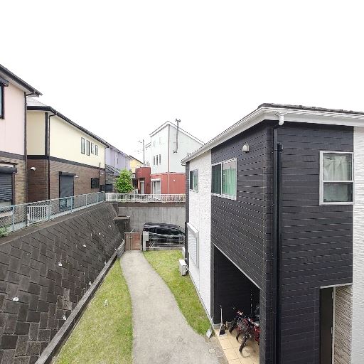 眺望・抜け感(確度72%):向かいは戸建てや低層住宅で、前面に大きな建物はなく抜けがある。
