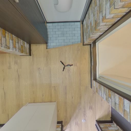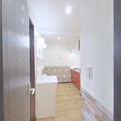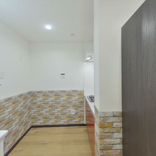 内装アクセントのレンガ調腰壁(確度80%):壁の下半分にレンガ調の腰壁があり、空間にデザイン性がある。