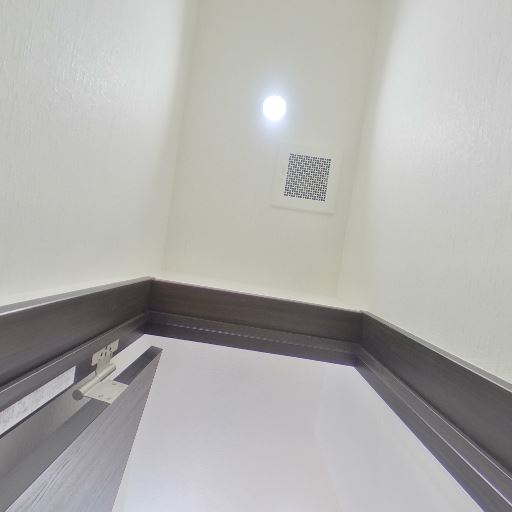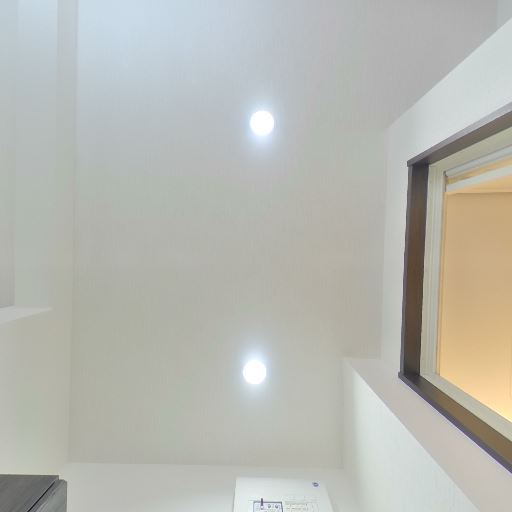 換気設備と照明(確度86%):天井にダウンライトと換気口があり、明るさと換気が確保されている。