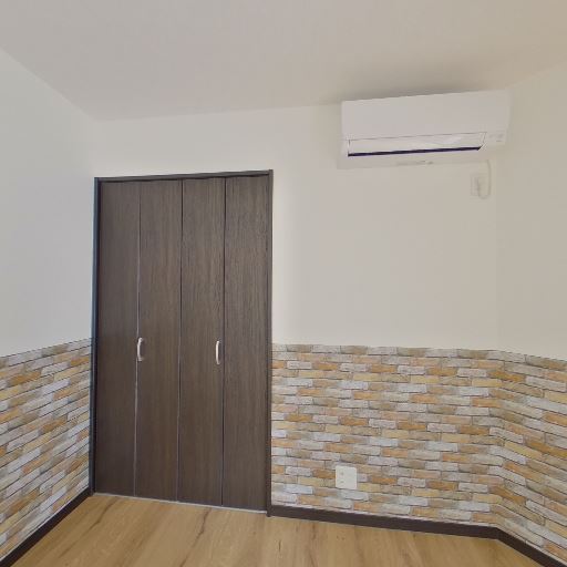 収納と設備(確度90%):クローゼットの折れ戸とエアコンが設置済み。