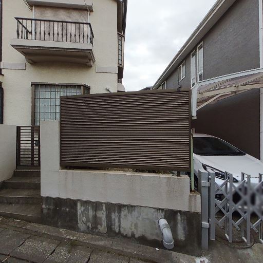 外構の目隠しと塀でプライバシー配慮(確度86%):道路側にルーバーの目隠し板とコンクリ塀があり、通行人からの視線が入りにくい。