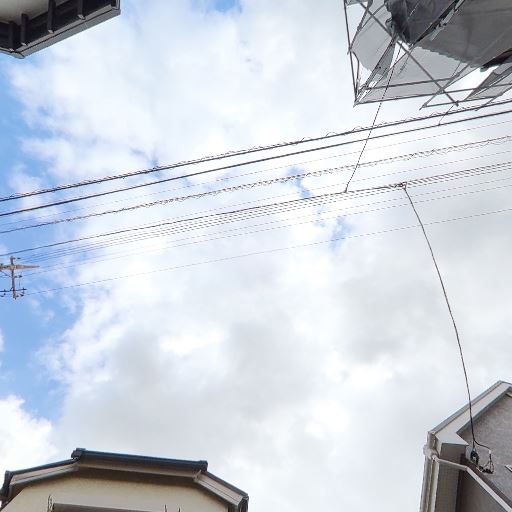 周辺は低層住宅地で日当たりは時間次第(確度69%):周囲は2階建てが多く、前面は抜けがあるが建物が近接。空は見えるが時間帯で陰になる可能性。