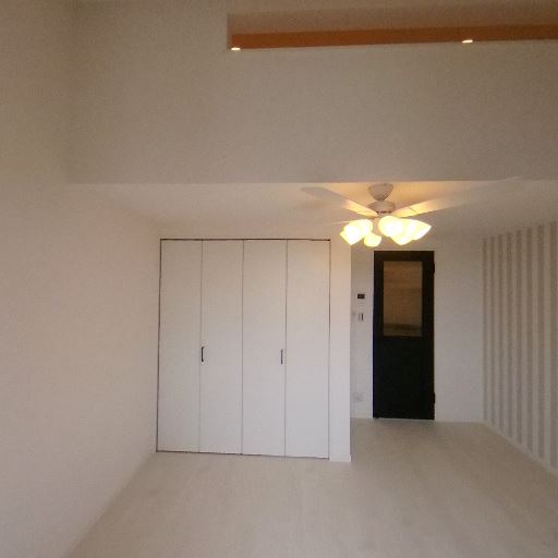 照明器具の設置(確度72%):シーリングファン付きの照明が設置済み。空気循環と明るさが確保されている。