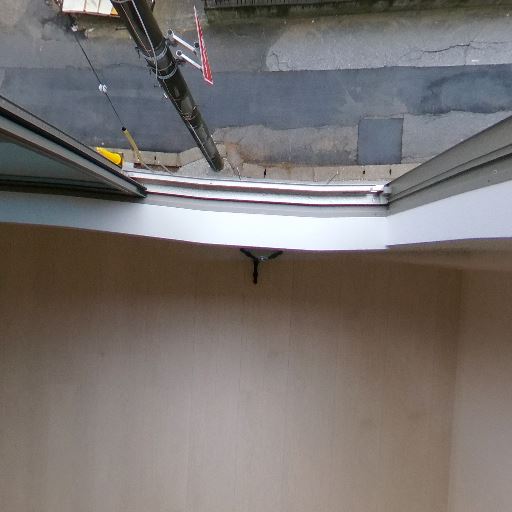 天井が高くロフトあり(確度86%):室内は吹き抜け気味で上部にロフトスペースと梯子が見える。空間の縦方向のゆとりがある。