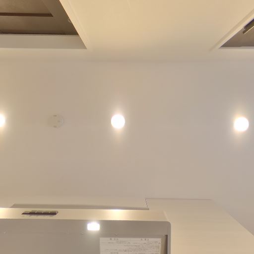 照明は埋込ダウンライト(確度78%):天井に複数のダウンライトがあり、均一に明るさを確保できる。