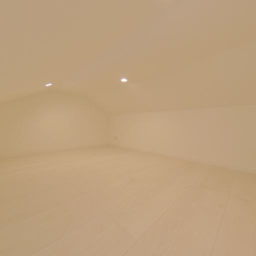 ロフト空間で天井が低い(確度90%):勾配天井で圧迫感があり、直立は難しそう。収納や就寝用のロフトと推測。