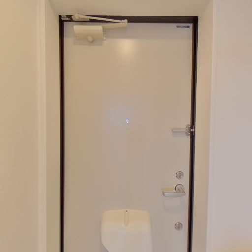 玄関ドアとダブルロック(確度79%):玄関側に覗き穴と複数の鍵・ドアバーがあり、防犯性が高そう。