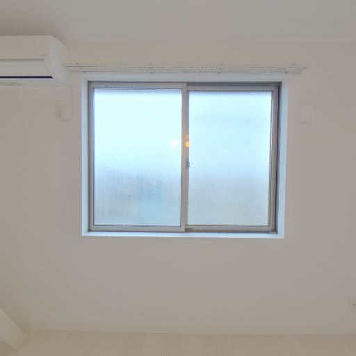 すりガラスの窓で採光はあるが眺望は限定的(確度76%):腰高サイズのすりガラス引き違い窓があり、日中の明るさは確保できそうだが外の景色は見えにくい。