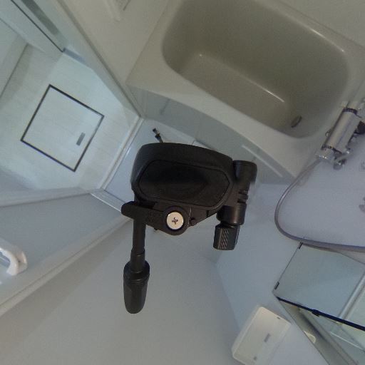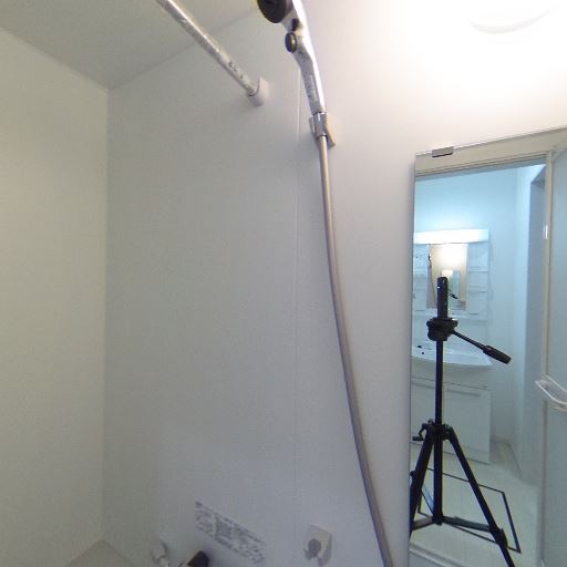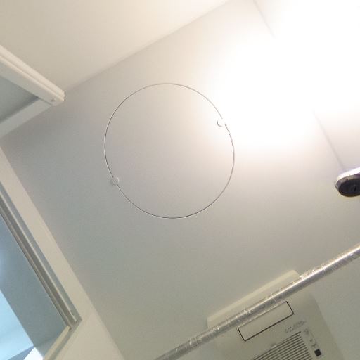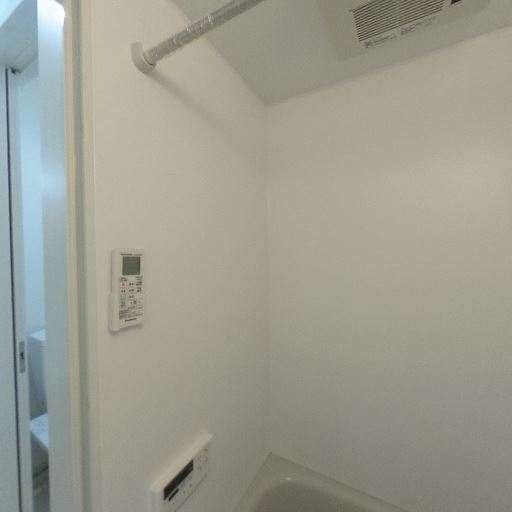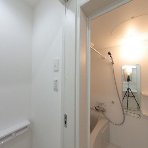 浴室乾燥・換気設備がありそう(確度87%):天井に換気口と操作パネルが見え、浴室乾燥または換気機能付きの浴室である可能性が高い。