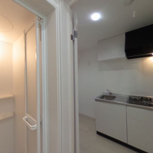 室内洗濯機置き場がある可能性(確度72%):キッチン横の床付近に給排水設備らしき部材が見え、室内洗濯機置き場が設けられている可能性が高い。