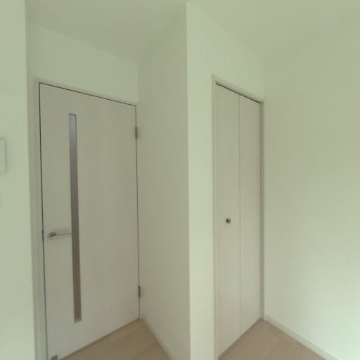 玄関まわりは清潔感がある(確度83%):壁・建具・床が白系と淡色で統一されており、目立つ汚れや大きな傷は見当たらない。全体として比較的きれいな印象を受ける。