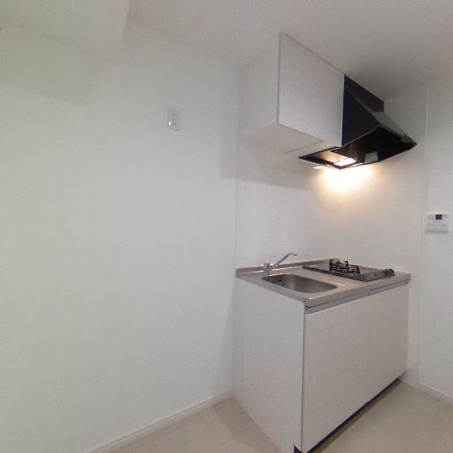 コンパクトなミニキッチン(確度94%):1口コンロと小さめのシンクを備えた省スペースのキッチンが設置されている。調理設備は最低限で、簡単な自炊向きと見られる。