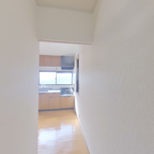 採光と明るさ(確度74%):通路奥のキッチン側に大きめの窓があり、自然光が入っている。天井照明も設置済み。