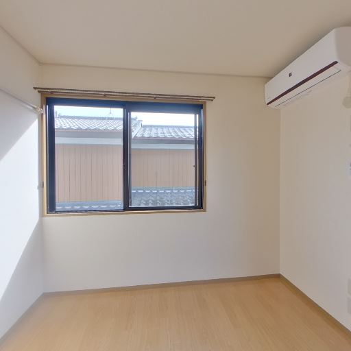 エアコン設置済み(確度96%):壁上部にエアコン本体が取り付けられている。