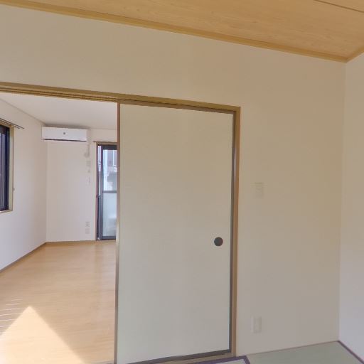 隣室との続き間(確度79%):引き戸(襖)と開口で隣のフローリングの部屋とつながっている。