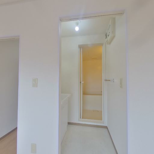 浴室が近接(確度86%):洗面所の横に浴室があり、段差の少ない入口で浴槽も確認できる。