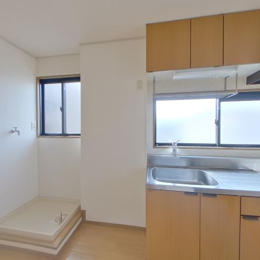 洗濯機置き場の有無(確度90%):キッチン横に防水パンと給水・排水口がある。
