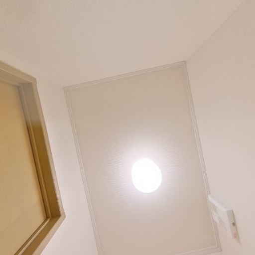換気扇または天井設備の存在(確度63%):天井に照明のほか、設備ボックスのようなパネルが確認できる。