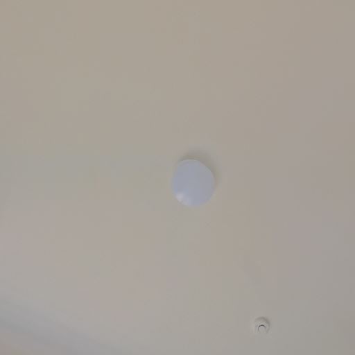 • 天井設備(確度76%):天井に火災報知器とダウンライトが設置され、点検口も確認できる。