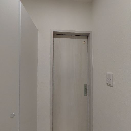 収納または設備扉が玄関付近にあり利便性がありそう(確度68%):右画像の左側に背の高い扉面が見え、玄関付近に収納スペースや設備スペースが設けられている可能性が高い。靴収納や日用品収納として使える構成なら実用性が高い。