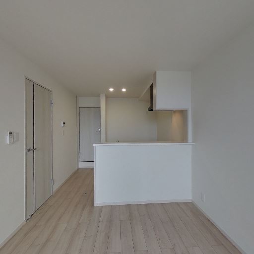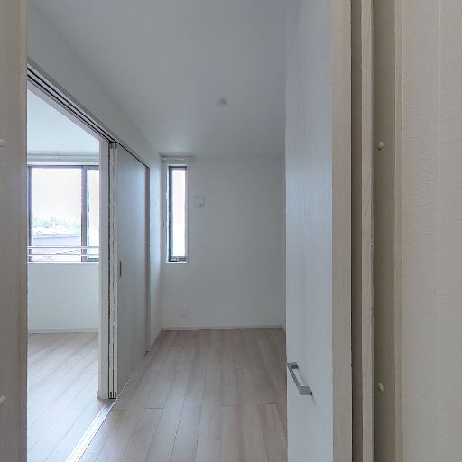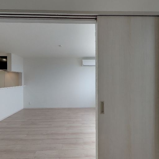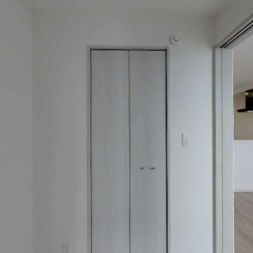内装が比較的新しく清潔感がある(確度80%):壁紙、建具、床材が白〜淡い木目で統一されており、目立つ傷や大きな汚れは確認しにくい。全体としてすっきりした印象の内装である。