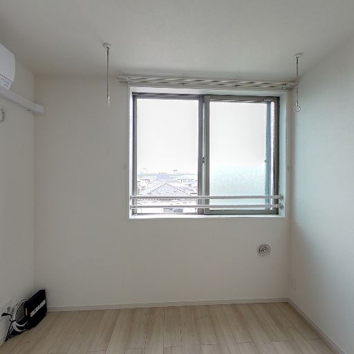 室内にエアコン設置済み(確度94%):窓付近の上部壁面にエアコン本体が確認でき、入居後すぐに空調を使える可能性が高い。