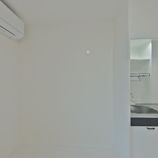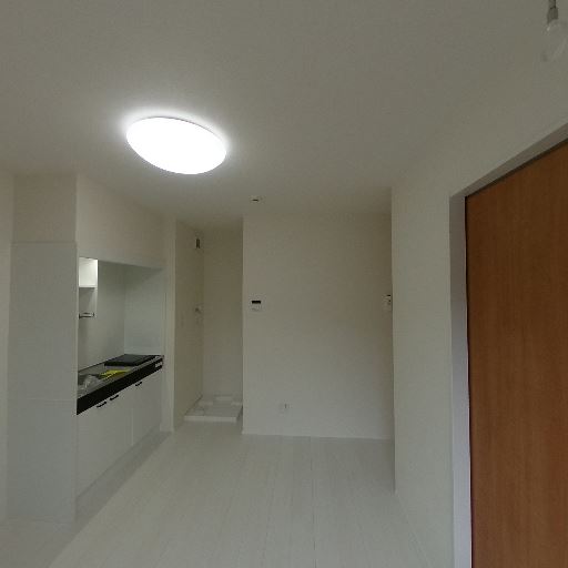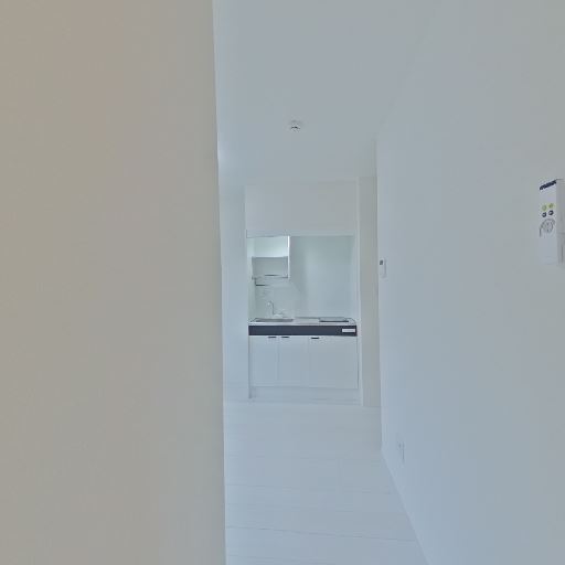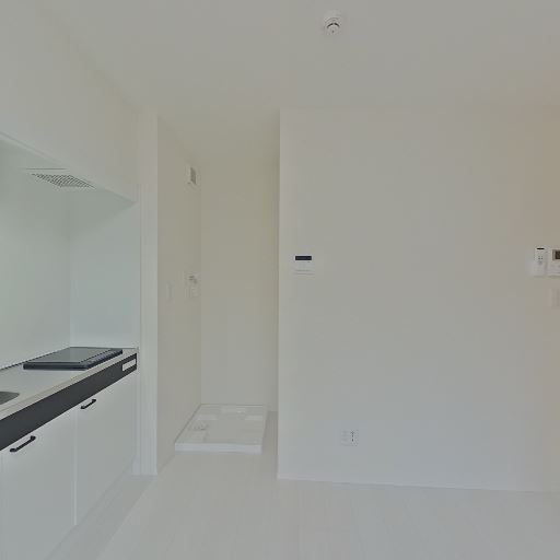 • 内装が明るく清潔感がある(確度87%):壁・床・キッチンが白系で統一されており、全体として明るくすっきりした印象を受ける。目立つ汚れや大きな損傷は画像上では確認しにくい。