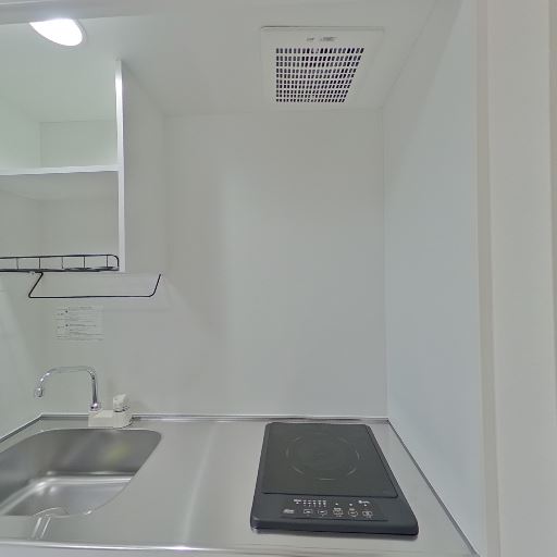 • IHコンロのコンパクトキッチン(確度96%):キッチンにはシンクと1口IHコンロが確認でき、単身者向けのコンパクトな調理スペースとなっている。