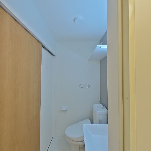 • 浴室・洗面・トイレが近接したコンパクト水回り(確度84%):浴室の出入口付近からトイレと小さな洗面台が近くに見えており、水回りが一箇所にまとまった効率的な間取りとみられる。