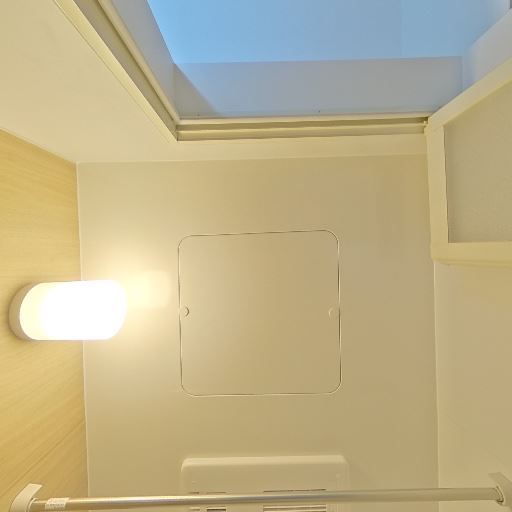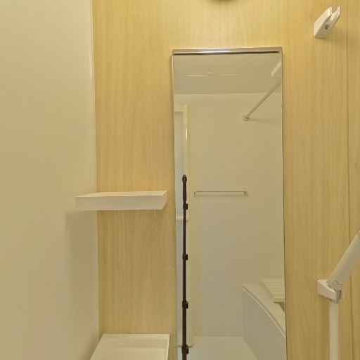 • 浴室に物干しバーがある(確度90%):浴室上部にバーが確認でき、室内干し対応の浴室であると判断できる。洗濯物を干す用途に使いやすそう。