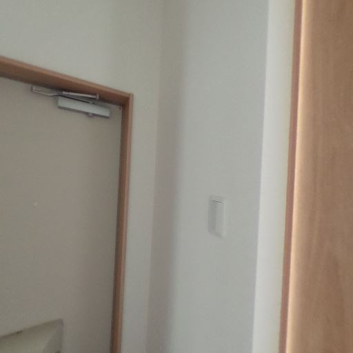 ドアクローザー付きの内扉(確度70%):内扉上部にドアクローザーが見える。開閉が静かで安全性に寄与。