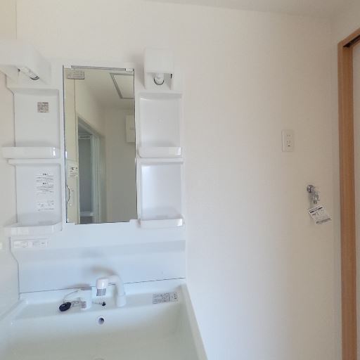 採光の期待(確度63%):洗面室の出入口側に明るい光が差し込んでおり、隣接する居室からの自然光が入っている可能性。