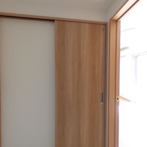 収納・建具(確度67%):引き戸タイプの収納/間仕切り扉があり、省スペースで開閉できる。木目で室内のトーンと統一。