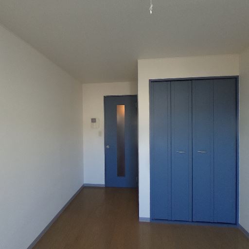収納が備え付けられている(確度92%):室内に両開きのクローゼットが設置されており、衣類や日用品を室内で整理しやすい構成に見える。