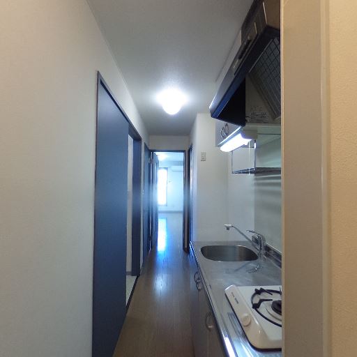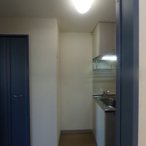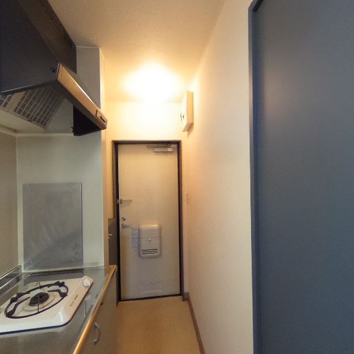 玄関からキッチン・廊下が近く生活感は出やすい(確度86%):玄関ドアを入ってすぐ脇にキッチン設備があり、来客時に水回りや調理スペースが視界に入りやすい間取りである。