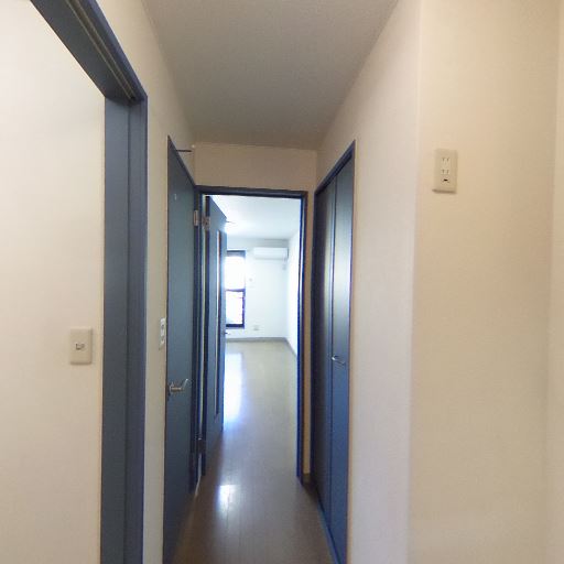居室までの廊下が見通しよく、奥に採光がある(確度83%):廊下の先に窓のある居室が見えており、玄関・キッチン周辺まで一定の明るさが届いているように見える。