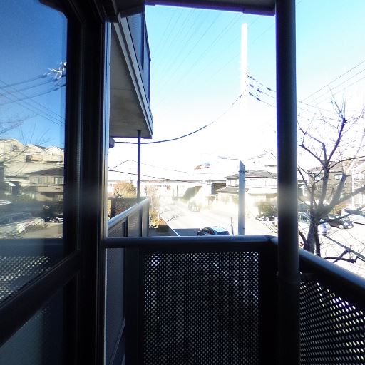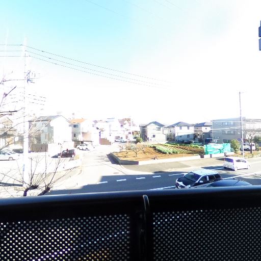 開放感のある眺望(確度88%):バルコニー前面に低層住宅や道路、畑が見えており、至近距離を大きく遮る建物は少ない。視界の抜けが比較的良い。