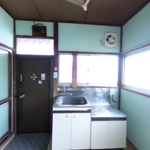 キッチンはコンパクト(確度73%):流し台は単体で作業スペースは狭め。換気扇は壁付けタイプ。