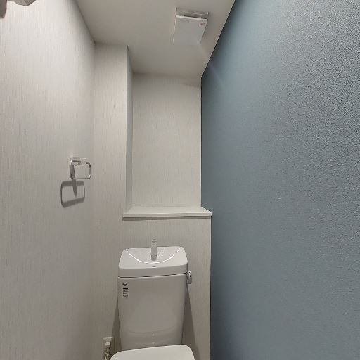 アクセントクロスあり(確度88%):片面の壁がブルー系で、他は白系のクロス。空間の印象に変化がある。