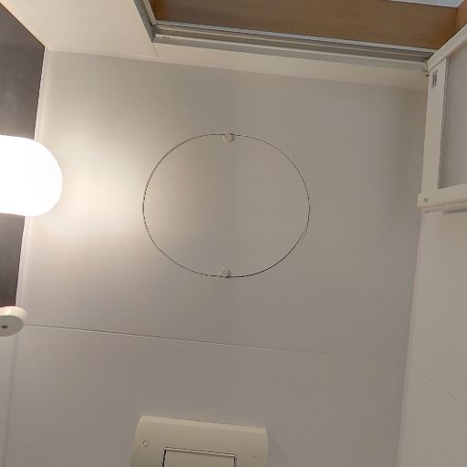 換気扇と操作パネルあり(確度82%):天井に換気扇、壁にトイレの操作パネルがある。