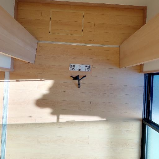 室内物干しの有無(確度74%):高窓の上に物干しバー・室内干し設備が確認できる。