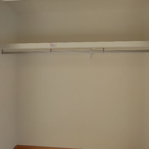 クローゼットの収納力(確度82%):横幅のあるハンガーパイプと上部棚が備わるクローゼットがある。