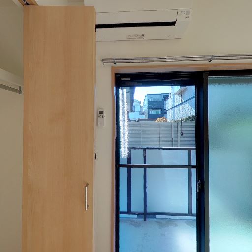 エアコン設置済み(確度90%):居室側に壁掛けエアコンが見える。
