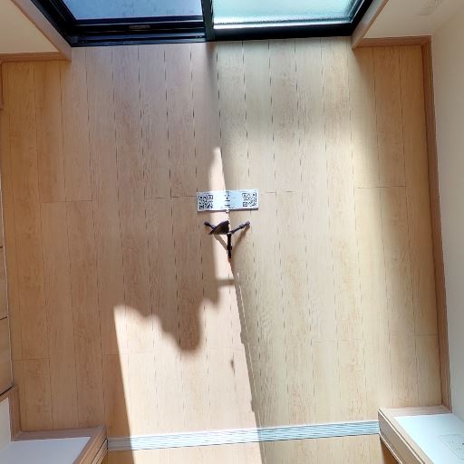 採光は良好(確度76%):バルコニー側から強い日差しが入り、室内床に日向ができている。