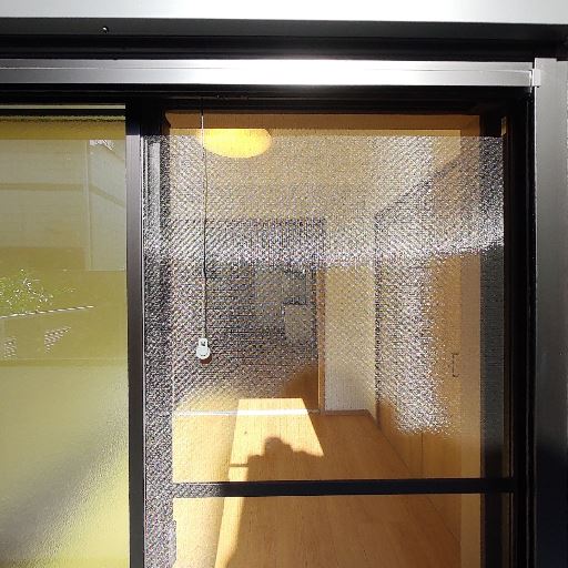 小窓は型ガラスで採光のみ(確度72%):側面の細長い窓はすりガラスで外の景観は見えない。