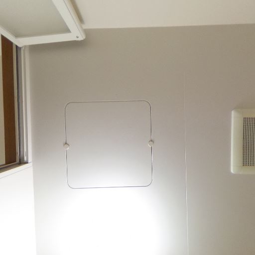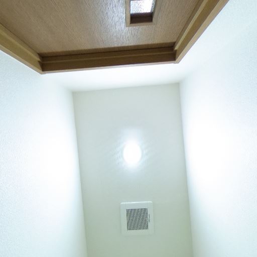 換気設備がある(確度91%):壁面上部に換気口が確認でき、トイレ内のこもりやにおい対策が考慮されている。
